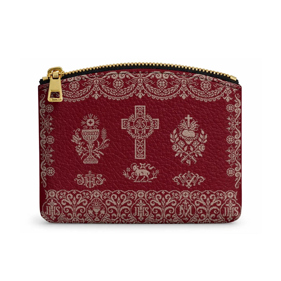 Catholight The Ave Maria Pattern Leather Rosary Pouch