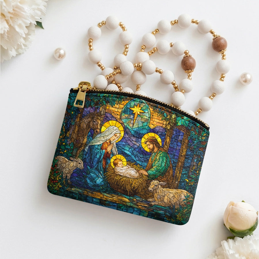Catholight Holy Nativity Leather Rosary Pouch