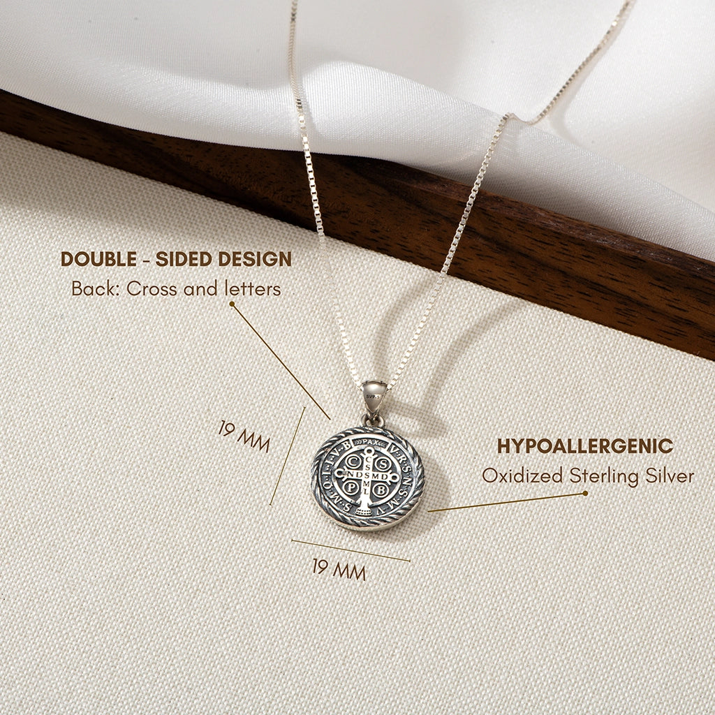 Catholight St. Benedict Necklace in Oxidized Sterling Silver