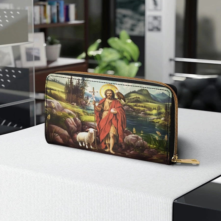 Catholight Saint John The Baptist Shepherd Leather Wallet Purse