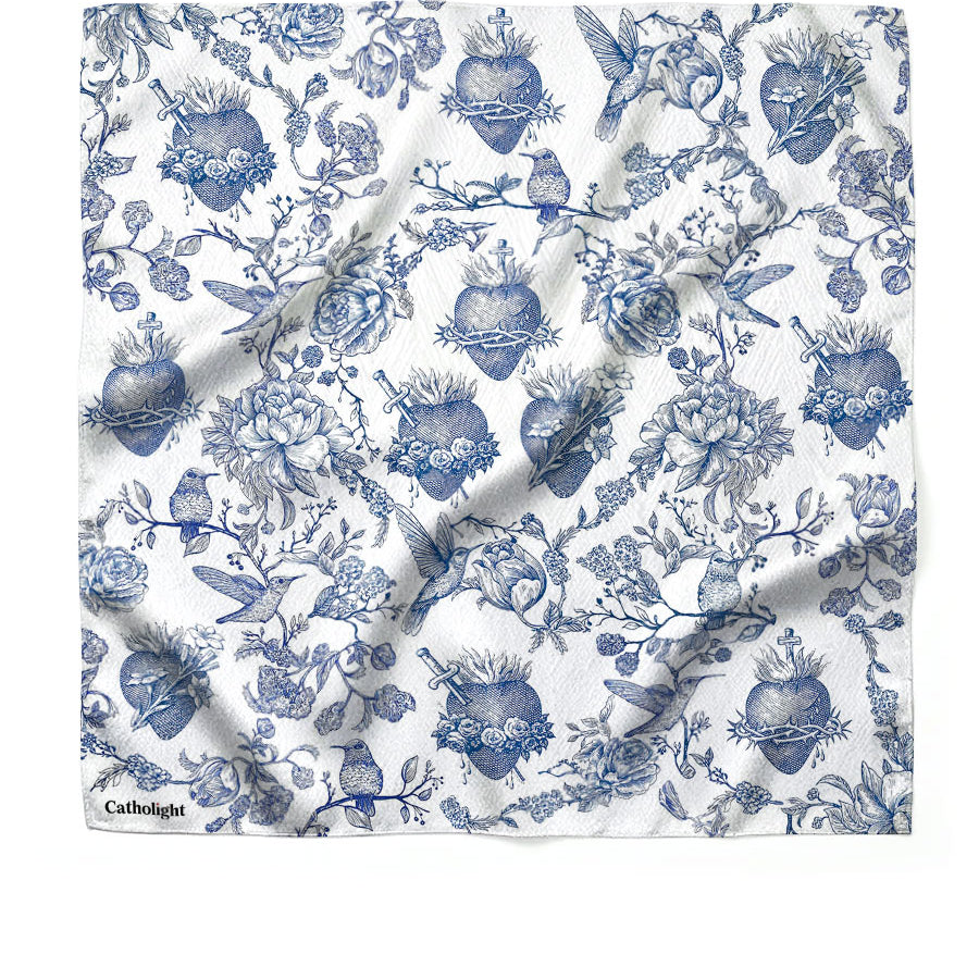 Catholight faith-inspired square scarves for prayer and everyday wear — mix & match any designs you love. Free items are automatically applied at checkout, no code needed.