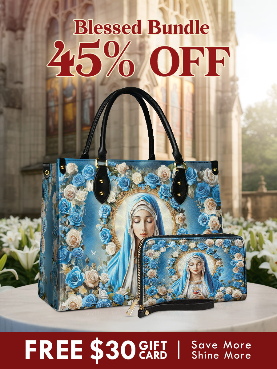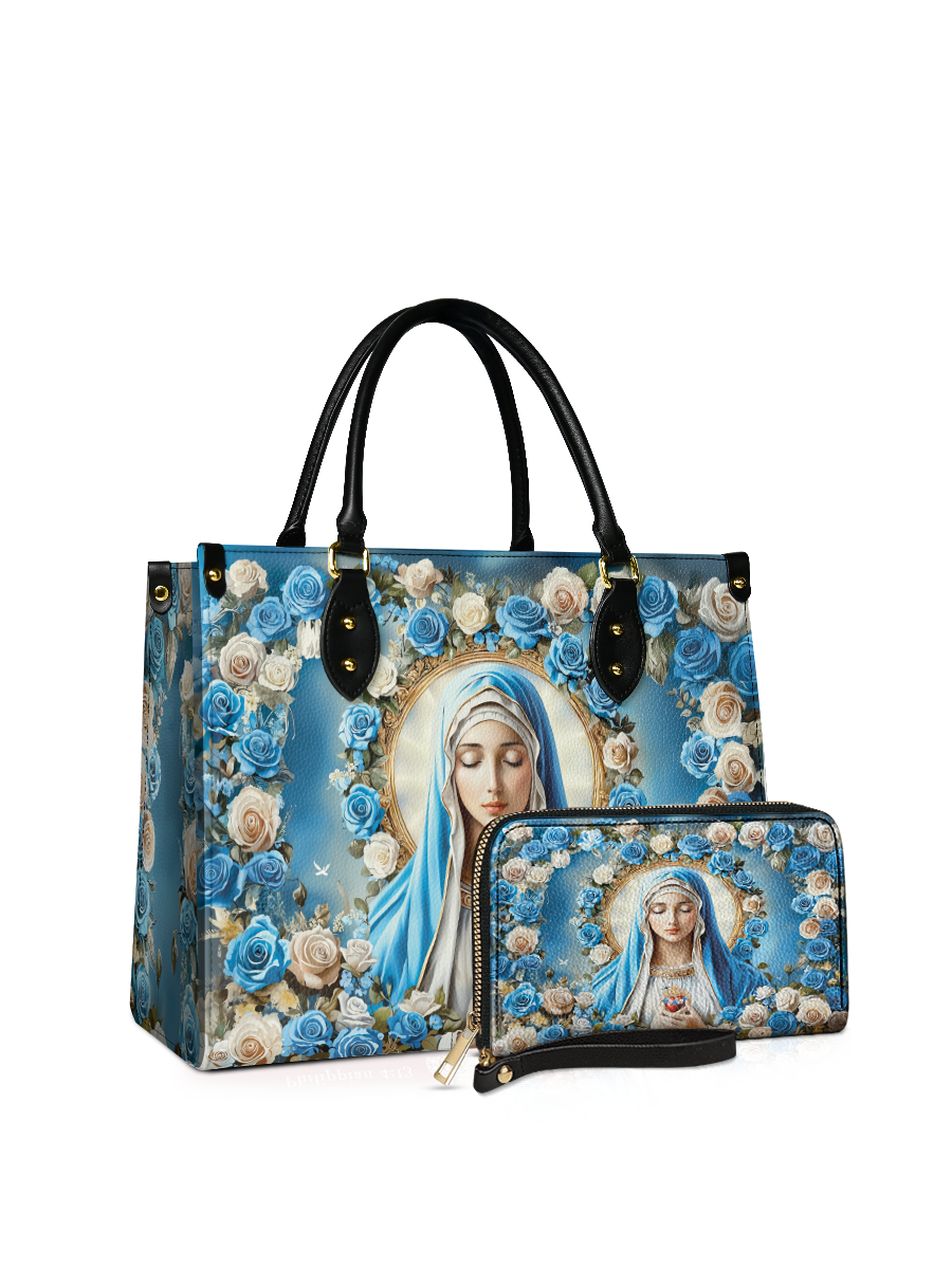 The spacious handbag offers both elegance and practicality, while the matching wallet provides organization with grace. Together, they create a timeless set that uplifts daily life with heavenly inspiration.