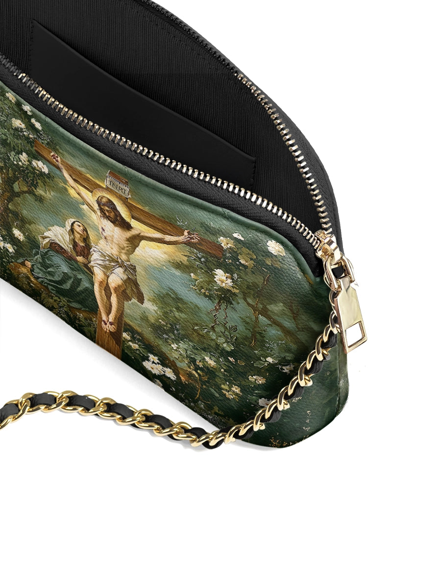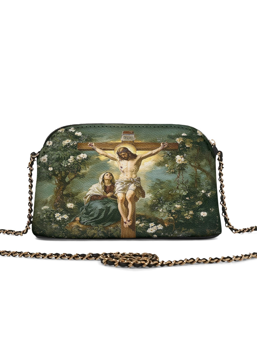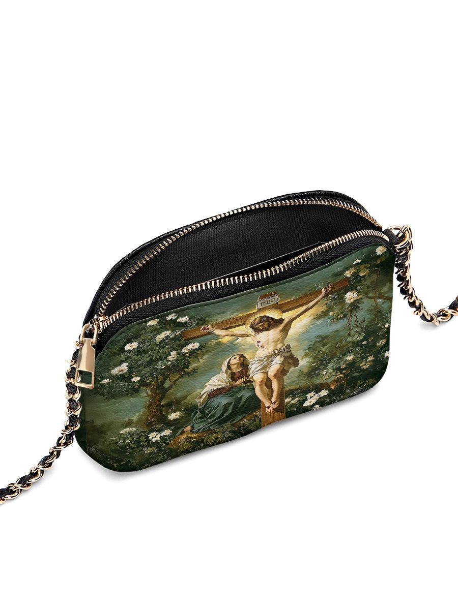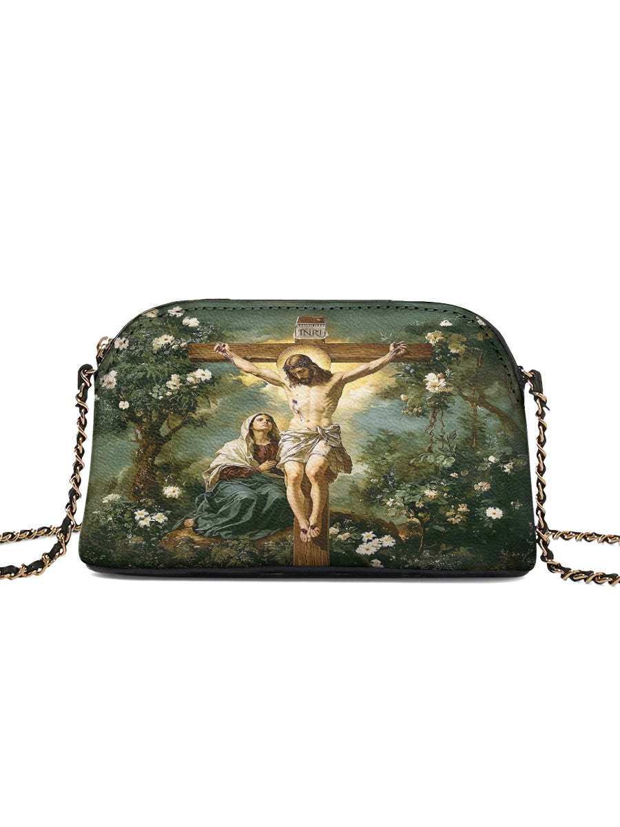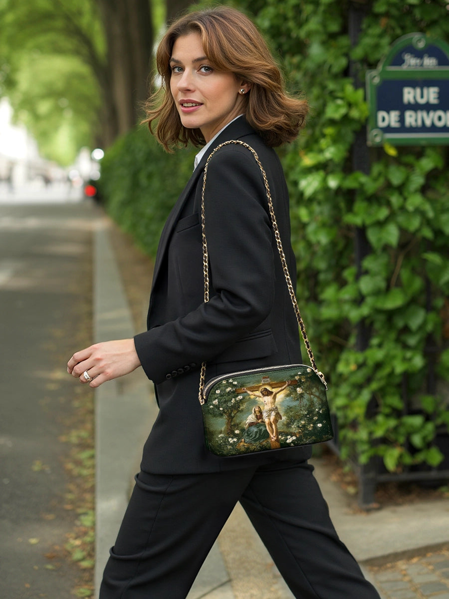 Designed with grace and intention, the Catholight Crossbody Bag is a quiet expression of faith and elegance. Its compact form, gold-accented chain strap, and symbolic artwork make it a meaningful companion for both daily life and sacred moments.