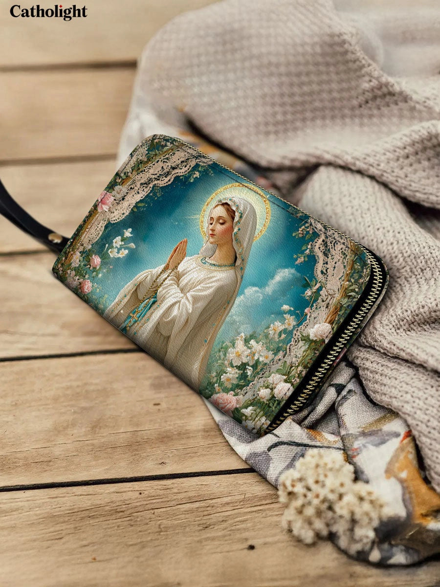 Catholight Lady Of Lourdes Leather Wallet Purse