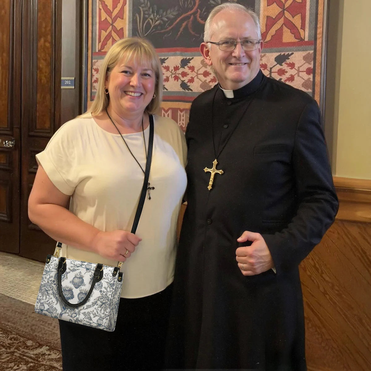 - SMALL (9.8”× 7.5”× 4.5”): A compact yet meaningful companion. Perfectly fits your Rosary, small prayer book, reading glasses, lip balm, and a holy card or relic pouch. Ideal for Sunday Mass, morning prayer walks, or quiet visits to church.