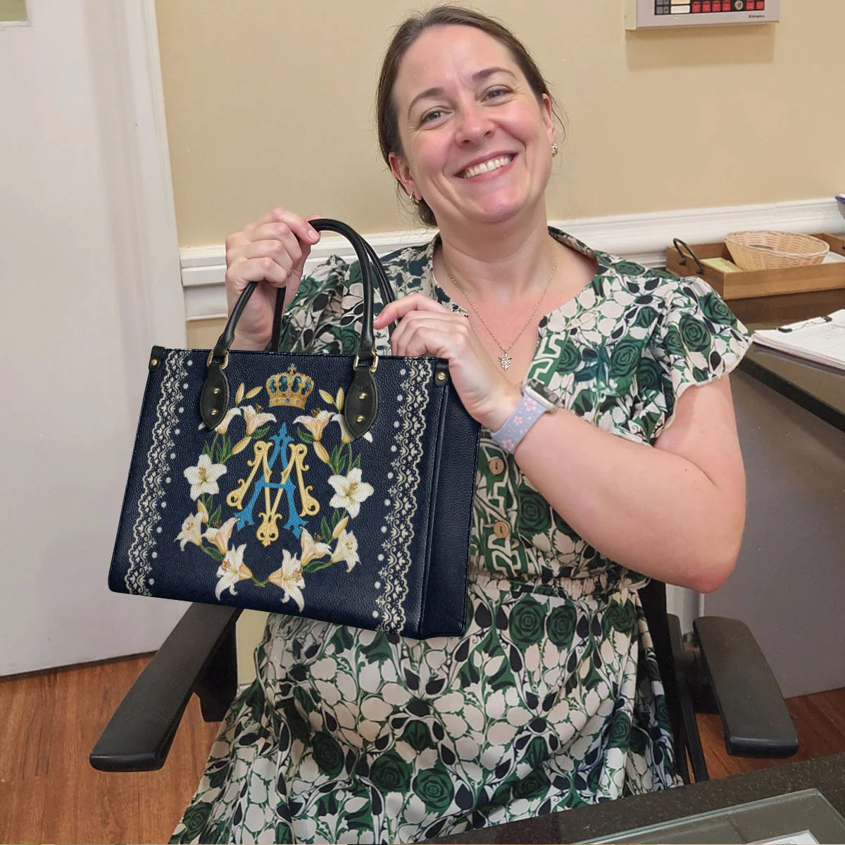 - MEDIUM (13.8”× 10.6”× 5.5”): Graceful and versatile. Holds your Missal, devotional journal, water bottle, hand cream, wallet, phone, and even a folded shawl for chilly chapels. Perfect for parish meetings, adoration, or daily errands with purpose.