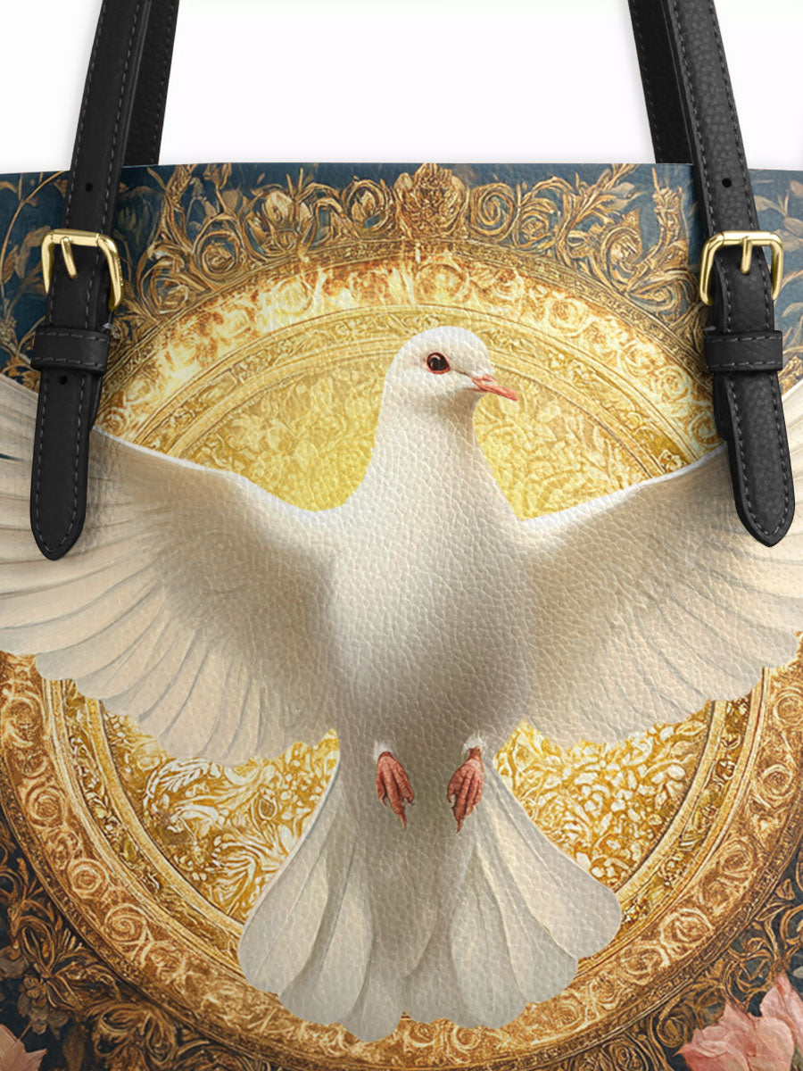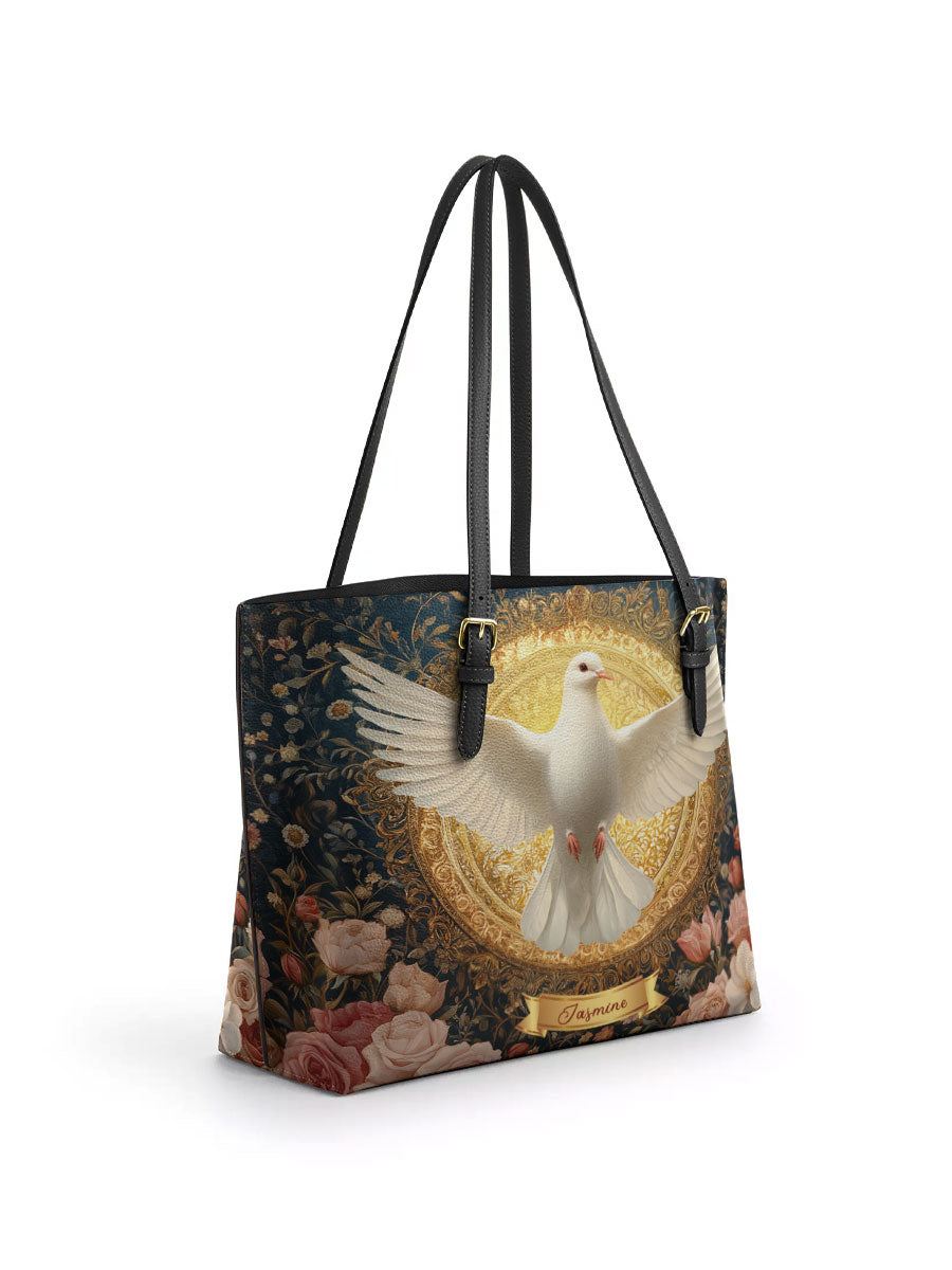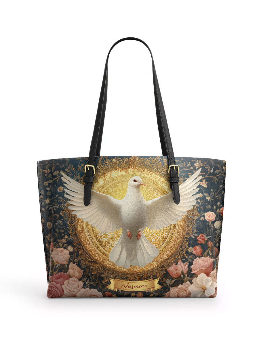Catholight Dove of Eternal Light Personalized Leather Tote Bag