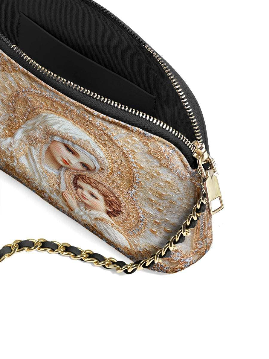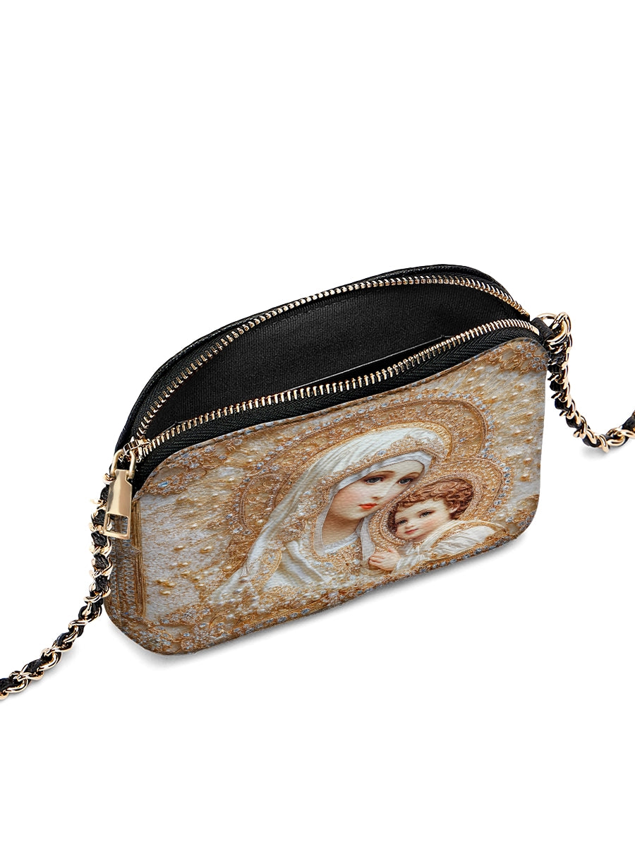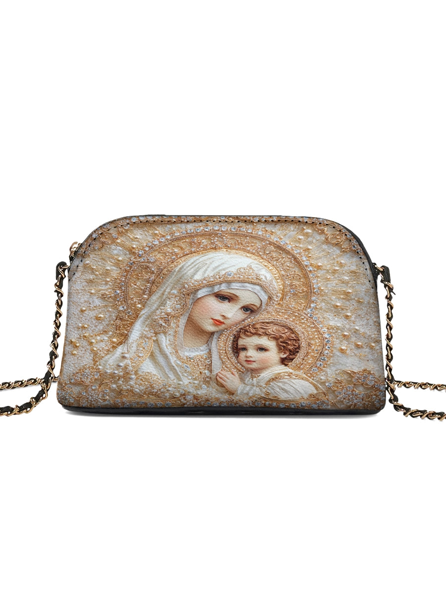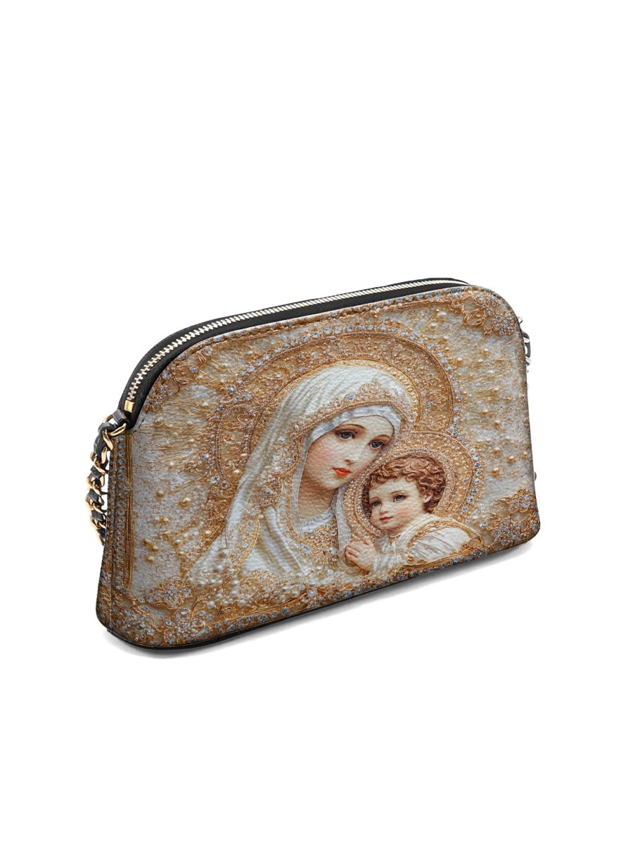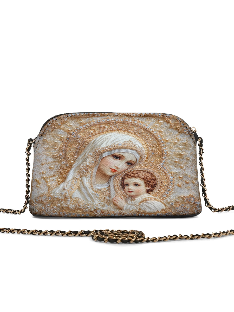 Designed with grace and intention, the Catholight Crossbody Bag is a quiet expression of faith and elegance. Its compact form, gold-accented chain strap, and symbolic artwork make it a meaningful companion for both daily life and sacred moments.