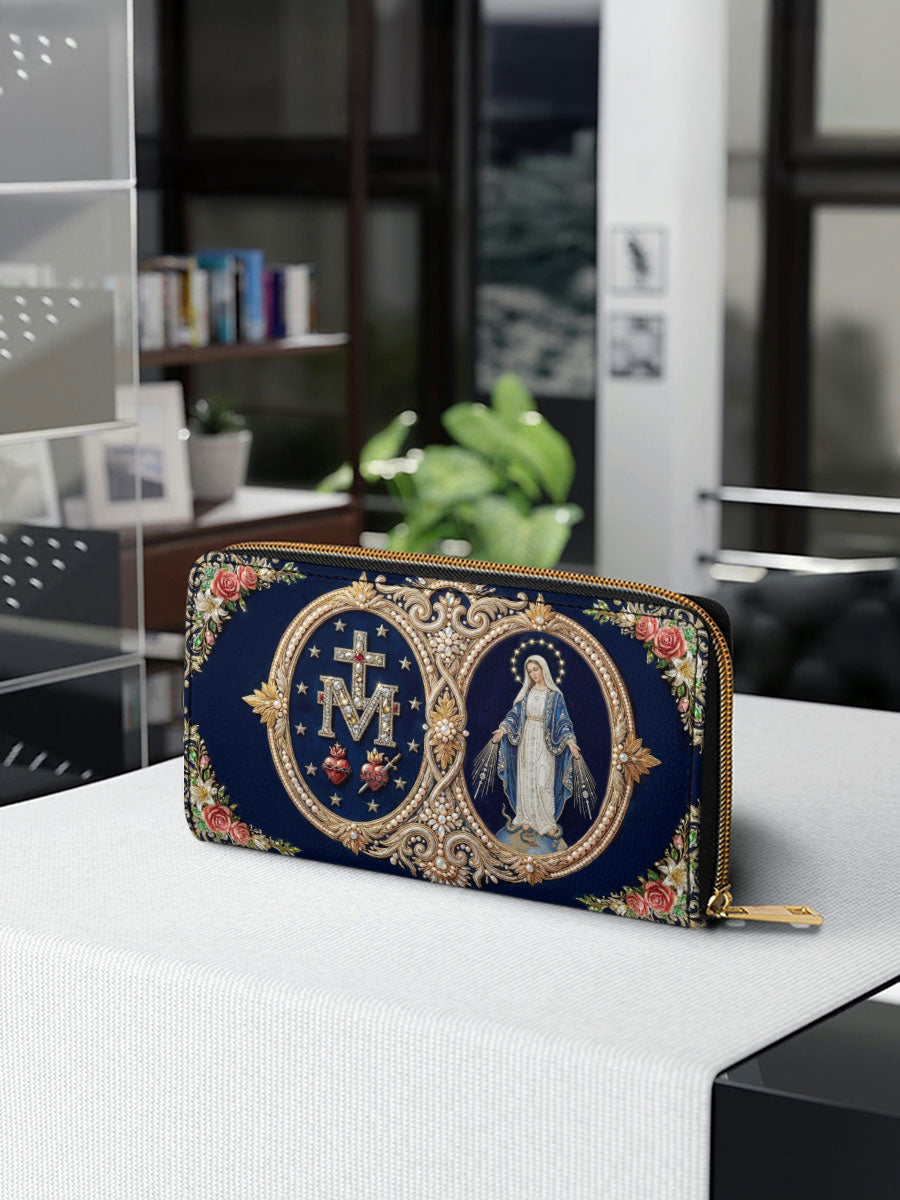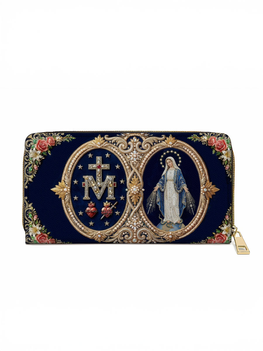 Inspired by the Miraculous Medal and the loving promise of Our Blessed Mother, this leather wallet is a quiet expression of faith you can carry every day.