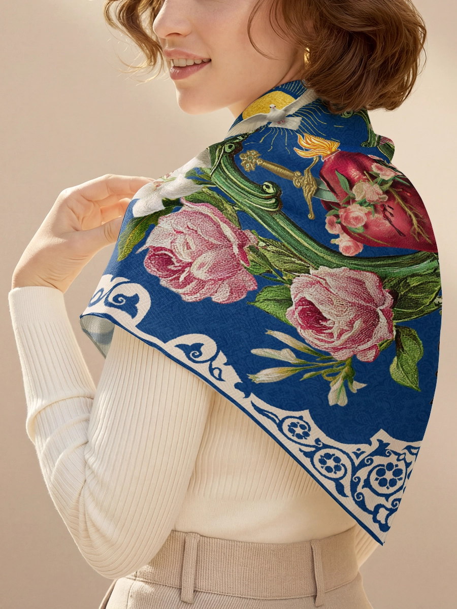Crafted from Woodgrain Silk, this 70x70cm square scarf glows with a soft, luminous texture — elegant yet quietly powerful. Lightweight and smooth, it drapes effortlessly for prayer, Sunday Mass, or as a meaningful daily accessory.