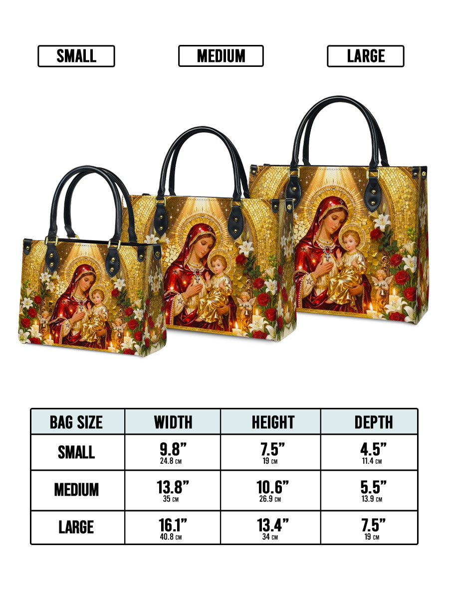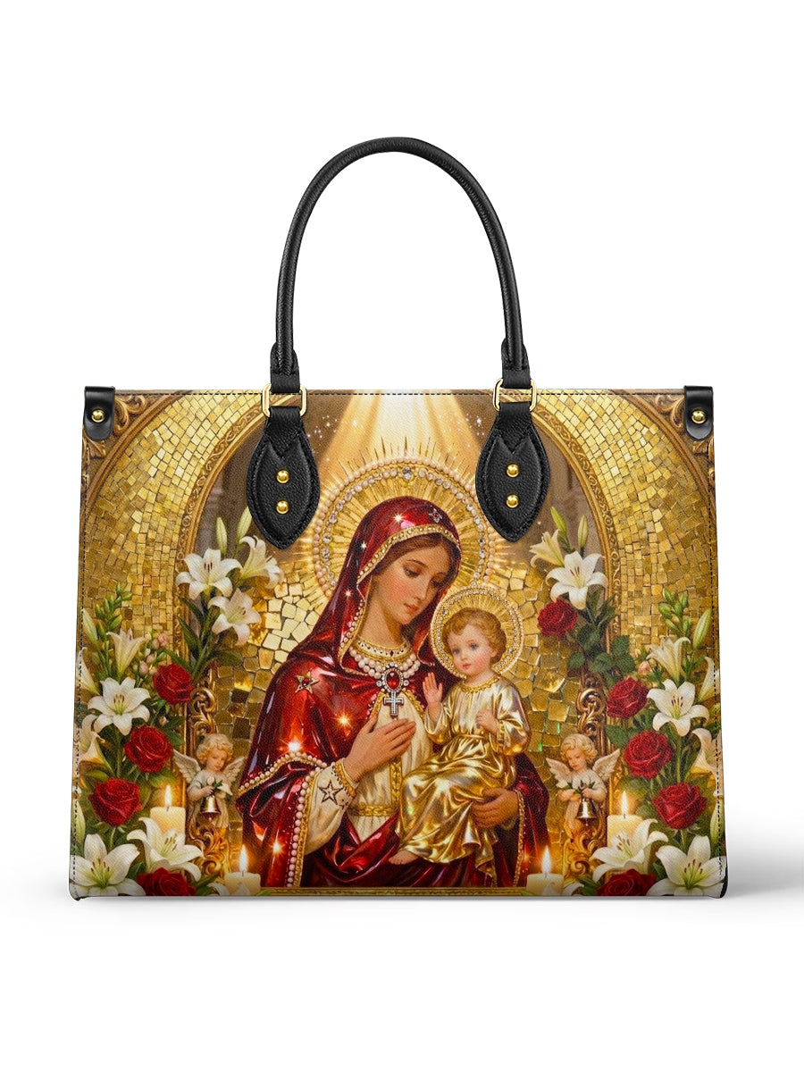 This leather bag is a gentle tribute to the love between Mary and the Child Jesus—a timeless image of faith, protection, and unconditional grace.